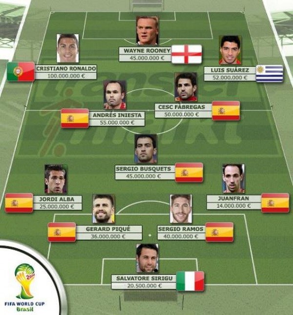 | Đội hình siêu sao bị loại khỏi World Cup 2014. |
