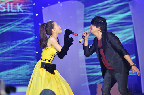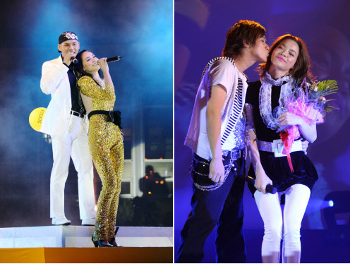 | Hà Hồ và Tuấn Hưng đã từng là người yêu của nhau nhưng tình yêu của họ không bền và chia tay khá sớm. Tuy vậy trên sân khấu cả hai vẫn rất ăn ý và rất tình cảm |