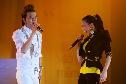| Hồ Ngọc Hà là một trong những nữ ca sỹ hiếm hoi của showbiz Việt luôn diễn chung với những chàng trai |