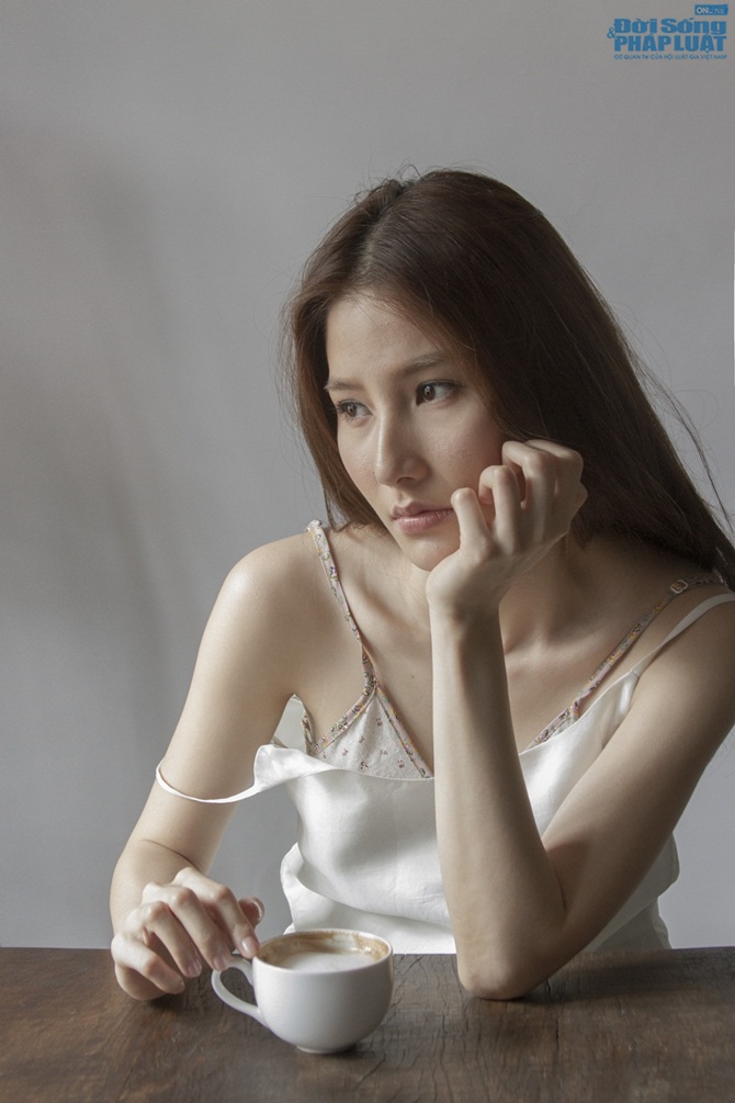 | Cô có những nét suy tư trong ánh mắt sâu thẳm, nhưng ẩn sâu dưới mái tóc thả tự nhiên, dưới nụ cười dịu dàng e lệ... vẫn là sự hồn nhiên và mong manh cần che chở. |