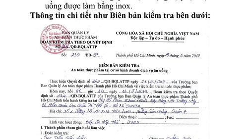 Biên bản kiểm tra đột xuất cơ sở Cơ sở Sunrise ở quận 7 - Trường Quốc tế Việt Úc (VAS). Ảnh: VOV |