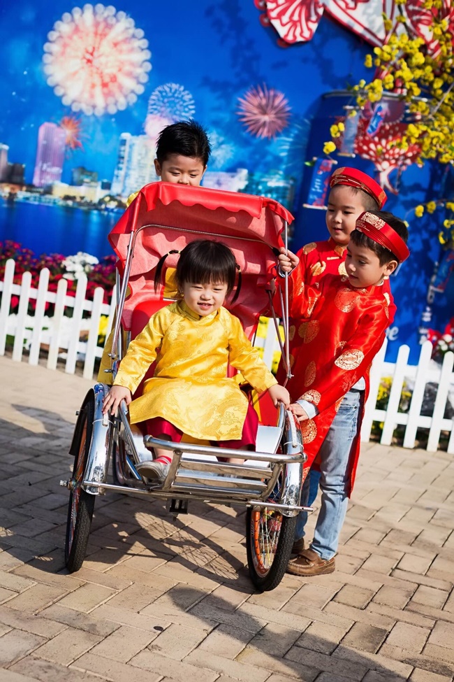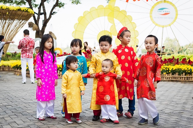 Các bé rất thích khi bố mẹ đưa đi chơi, gặp gỡ bạn bè dịp đầu năm và được mặc áo dài đủ màu sắc. |