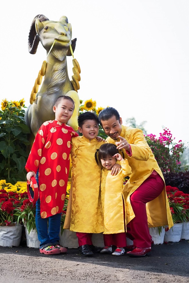 (ĐSPL) - Diễn viên Hùng Cửu Long cùng vợ và các con trai diện áo dài rực rỡ du xuân đầu năm.