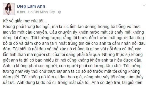 Dưới đây là toàn bộ chia sẻ của Diệp Lâm Anh: