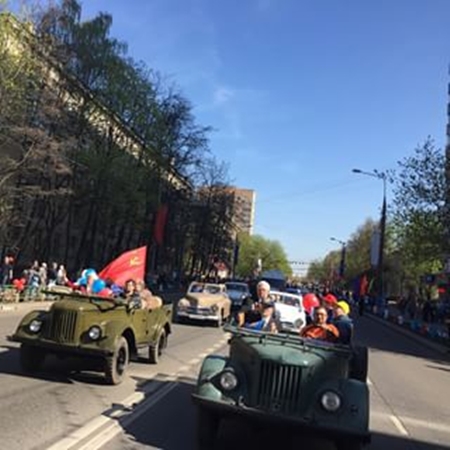Các cựu chiến binh lái xe từ thời Thế Chiến II trên đường phố Moscow trong cuộc tuần hành có tên gọi "Our Great Victory" (Chiến thắng Vĩ đại của Chúng ta). Ảnh: Sputnik/Instagram. |