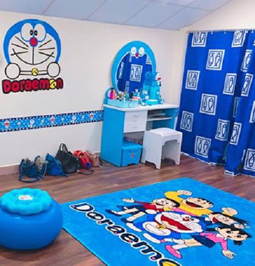 Theo đó, cô em thích Kitty nên căn phòng ngập sắc hồng còn cô chị là tín đồ của Doremon và màu xanh, do đó căn phòng của 2 cô gái này luôn trong trạng thái mát mẻ.