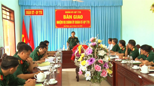 Thực hiện các quyết định về nhân sự cán bộ của Bộ Quốc phòng và Bộ tư lệnh Quân khu 7 Đại tá Nguyễn Thành Ruân, nguyên Chính ủy Đoàn Kinh tế Quốc phòng 778 đã bàn giao nội dung công việc của chức vụ Bí thư Đảng ủy, Chính ủy Đoàn Kinh tế Quốc phòng 778 cho Thượng tá Nguyễn Duy Dương, nguyên Phó Chính ủy Đoàn Kinh tế Quốc phòng 778, để đảm nhiệm chức trách, nhiệm vụ trên cương vị mới là Phó Chính ủy Bộ Chỉ huy Quân sự tỉnh Bình Phước.