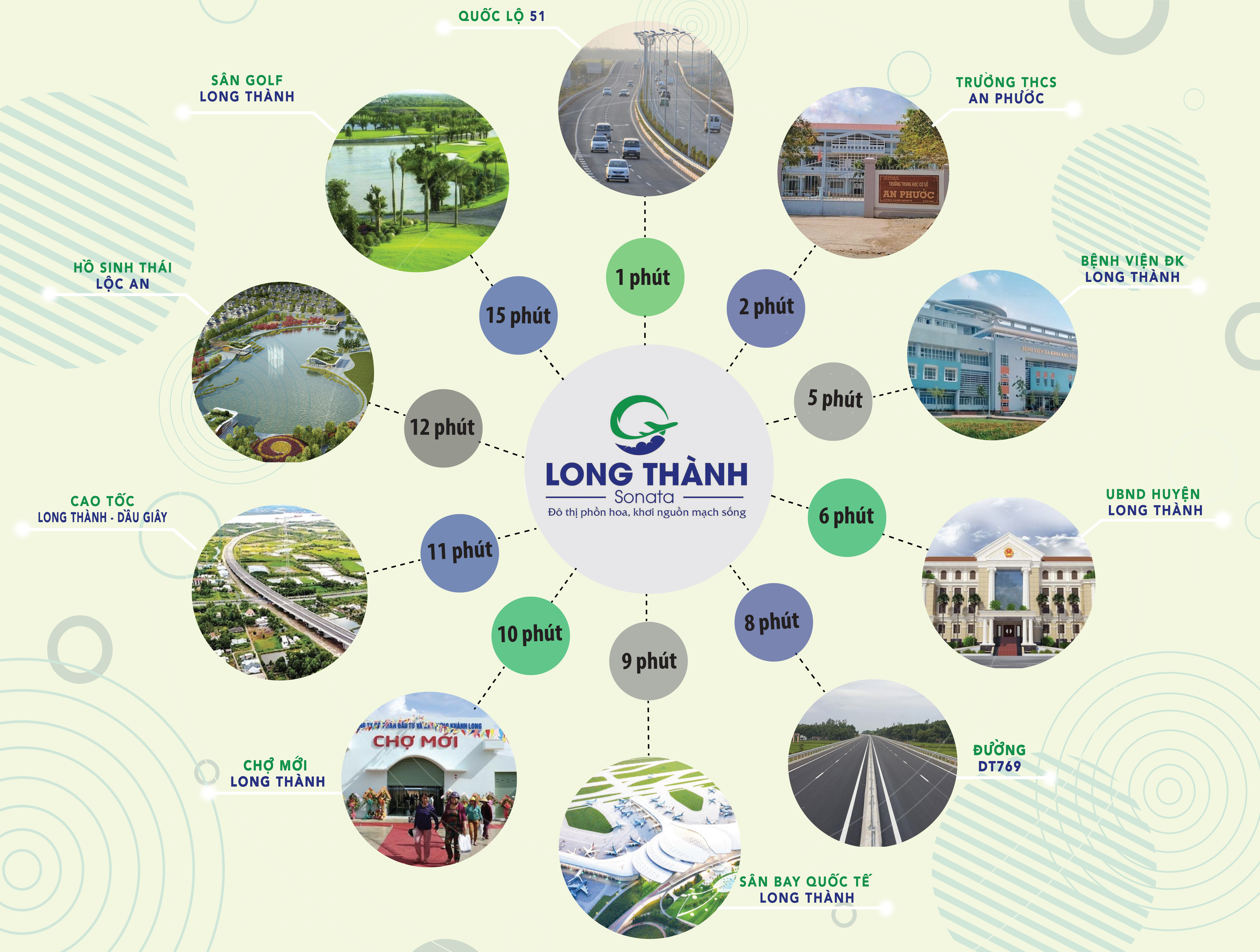 Từ Long Thành Sonata, cư dân chỉ mất khoảng 30 phút để di chuyển về TP.HCM thông qua Cao tốc TP.HCM - Long Thành - Dầu Giây và chỉ mất khoảng 5 phút để di chuyển đến sân bay quốc tế Long Thành.