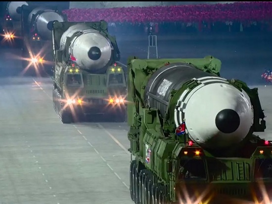 Tên lửa cỡ lớn ICBM được trình diễn trong lễ duyệt binh. Ảnh: 38north. |