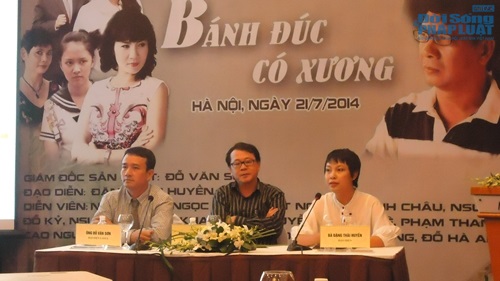 Đạo diễn Đặng Thái Huyền, đại diện Đài THVN và công ty Lasta trong buổi họp báo công bố phim. |