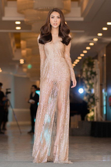 Trong khi đó, Tường Linh cũng không chịu thua kém khi diện mẫu thiết kế của Chloe Design. Bộ váy ánh kim xuyên thấu quyến rũ được người đẹp tận dụng tối đa để khoe khéo đôi chân dài và thân hình cân đối. Tường Linh luôn nằm trong top các sao Việt mặc đẹp nhờ phong cách thời trang hiện đại, cập nhật xu hướng và tạo điểm nhấn ấn tượng mỗi lần xuất hiện.