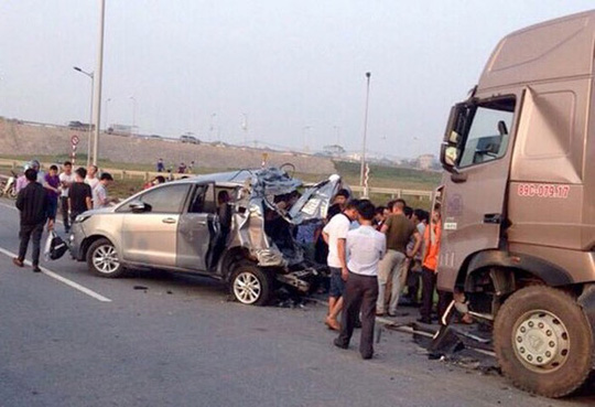 Đúng lúc này, tài xế Lê Ngọc Hoàng lái chiếc xe đầu kéo kéo theo rơ-moóc đi thuận chiều trên cao tốc với tốc độ 60 - 65 km/giờ. Khi đến gần nút giao thấy chiếc Innova phía trước đang bật đèn phanh đỏ, tài xế Lê Ngọc Hoàng không phanh giảm tốc mà quan sát gương chiếu hậu. Do phía sau có ô tô khác đang vượt lên, Hoàng không thể chuyển làn nên đã tông vào đuôi chiếc Innova khiến 4 người tử vong tại chỗ.