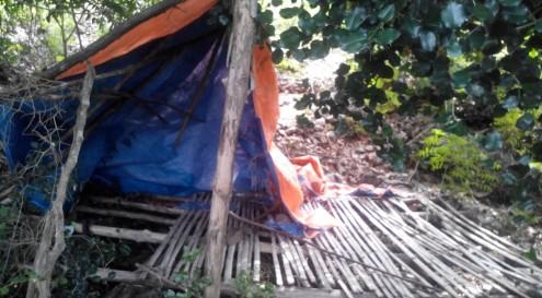 Nơi phát hiện thi thể ông Tr. là một căn chòi canh rẫy ven bìa rừng - Ảnh: Người đưa tin |