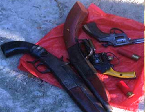 Trong quá trình bỏ chạy, các đối tượng liên tục lái xe ô tô ngăn cản, chèn ép không cho xe máy của tổ công tác vượt lên và bỏ lại 1 túi xách bên trong có 4 khẩu súng tự chế (2 khẩu côn quay, 2 khẩu samlech) cùng một số viên đạn.