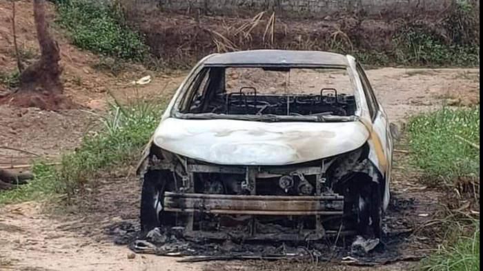 Hình ảnh chiếc xe bị thiêu rụi. |