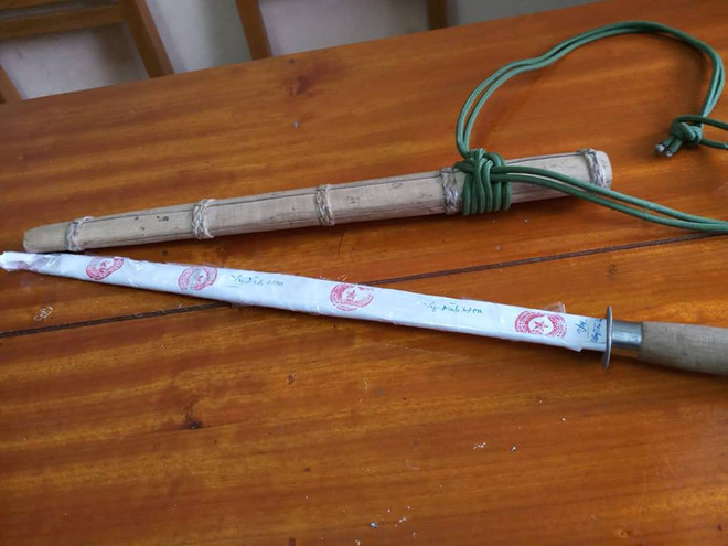 Công an cho biết, ông Hoa hành nghề thầy cúng, thanh kiếm ông đâm con trai thường dùng làm lễ cúng bái.