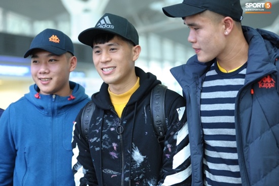 Đình Trọng khá tươi tắn trước giờ lên máy bay. Ảnh: Lá chắn thép - Trần Đình Trọng 1 st Fanpage |