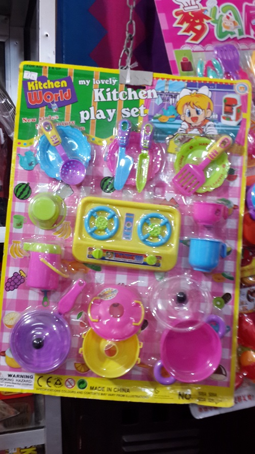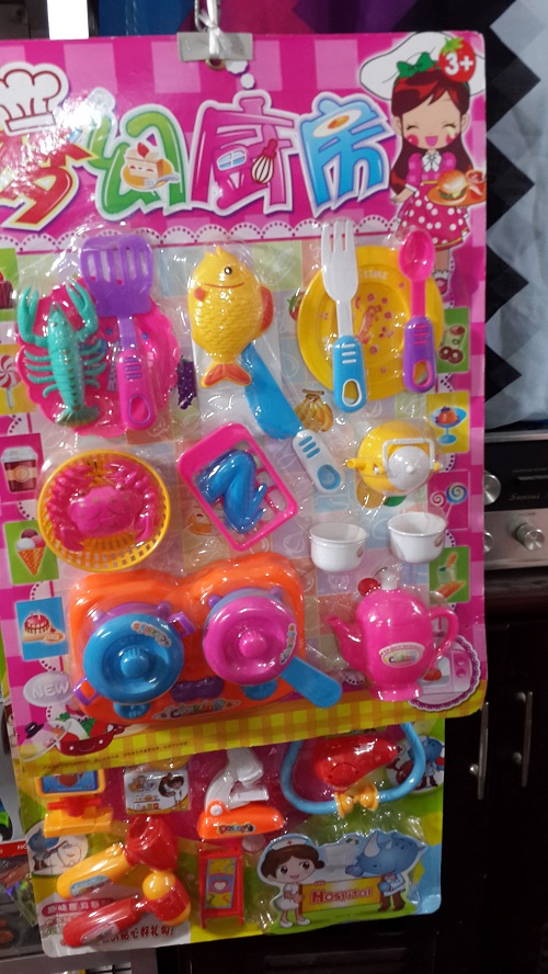 Đồ chơi nấu ăn giá rẻ của Trung Quốc bày bán rất nhiều trên thị trường. |