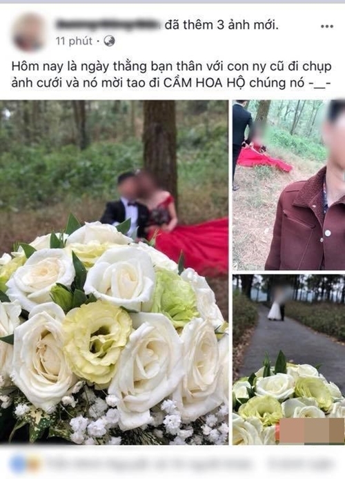 Trên trang cá nhân của mình, chàng trai D.C.D đã đăng tải 3 bức ảnh trong buổi chụp hình cưới của bạn thân, anh chàng đóng vai trò "hậu cần" và đặc biệt là lời chia sẻ: "Hôm nay là ngày thằng bạn thân và người yêu cũ đi chụp ảnh cưới và nó mời tôi đi cầm hoa hộ chúng nó!".