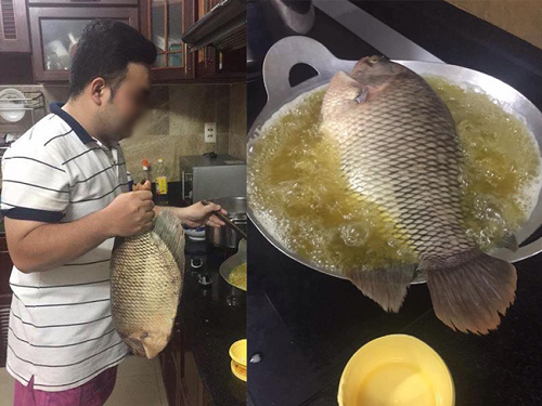 Để rán một con cá, nam thanh niên đã đổ ngập đầy cả chảo dầu. Hình ảnh khiến dân mạng không nhịn được cười vì độ hài hước và “bá đạo”.