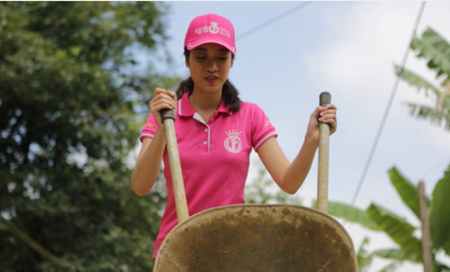 Trong ngày thi công, Mỹ Linh cùng đoàn hổ trợ tiến hành đổ đất, lắp bóng đèn vào các trụ và kéo dây điện. Người đẹp cho biết: “Linh không tự tay lắp được những chiếc trụ đèn này. Tuy nhiên, Linh sẽ cố gắng hỗ trợ và phụ giúp mọi người từ bên dưới để dự án thắp sáng con đường thành công tốt đẹp”.