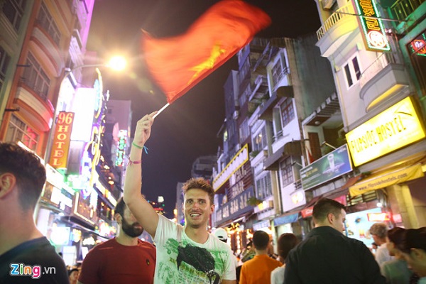 | Hàng trăm CĐV đổ về phố Tây Bùi Viện (quận 1, TP.HCM) hò reo ăn mừng - Ảnh: Tri thức trực tuyến |