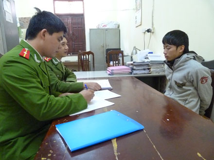 | Dũng tại cơ quan công an. Ảnh: T.H |
