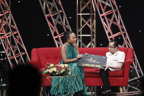 Nữ ca sĩ dùng số tiền quỹ 5 triệu đồng để trao cho Nguyễn Đức - fan hâm mộ đặc biệt của cô như một món quà tinh thần ý nghĩa. |