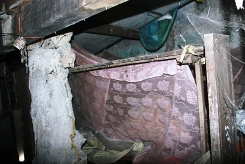 Theo ghi nhận của PV, ngôi nhà của cụ Hộ đang ở là một không gian tối u ám ẩm mốc, mùi của chuột gián và ánh sáng lờ mờ phát ra từ chiếc bóng đèn nhỏ độc nhất. Men theo lối cầu thang nhỏ để “khám phá” từ tầng 1 lên tầng 2 của căn nhà “lập dị” này, chúng tôi phát hiện tại tầng 1 cụ Hộ làm nơi để ngủ nghỉ, còn tầng 2 là nơi ông dùng để xem ti vi và nấu nướng. Trước hoàn cảnh này, không ai là không cảm động nhưng khi nghe rõ sự tình về cụ thì mới vỡ lẽ ra.