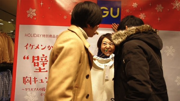 Theo tin tức trên Japantrends, nhằm thu hút khách hàng nhân dịp lễ Giáng sinh và năm mới sắp tới, hãng thời trang Uniqlo Gu của Nhật đã nảy ra sáng kiến bán hàng độc đáo tại chi nhánh Ginza Tokyo, đó là chiến dịch “Kabe-don”.