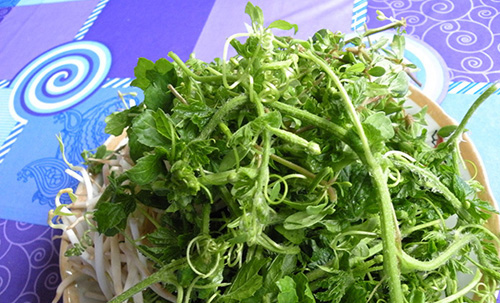 Món cháo “cắn không la” này thực chất là món cháo được biến tấu từ cháo cá lăng. Ăn kèm với cháo là loại rau đọt nụ - loại rau hiếm gặp ở chốn Sài Gòn.