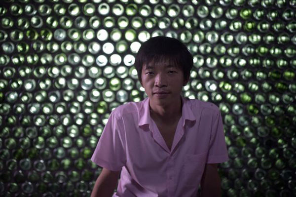 Để gắn kết các vỏ chai bia chắc chắn với nhau, chàng trai Li đã dùng đến các vật liệu khác như cát, xi măng và đá. |