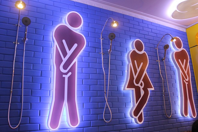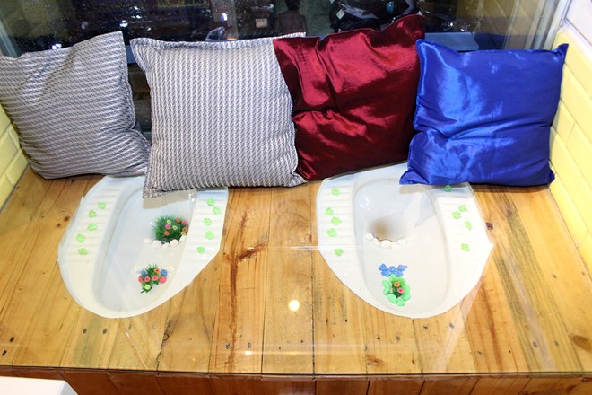 | Khách bước vào quán cà phê không khác gì bước vào thế giới khác lạ của những chiếc bồn cầu đủ màu sắc, kiểu dáng. Những chiếc ghế ngồi hình bồn cầu với chi phí 700.000 đồng đến 1 triệu đồng là nội thất đặc trưng của quán. |
