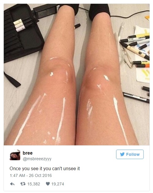 Ngay lập tức, dòng Tweet trên đã được lan truyền rộng rãi trên các trang mạng xã hội khi nhiều người dùng khác cũng cảm thấy không phân biệt nổi đó là một đôi chân dính dầu bóng hay chỉ là một đôi chân dính mực trắng thông thường.