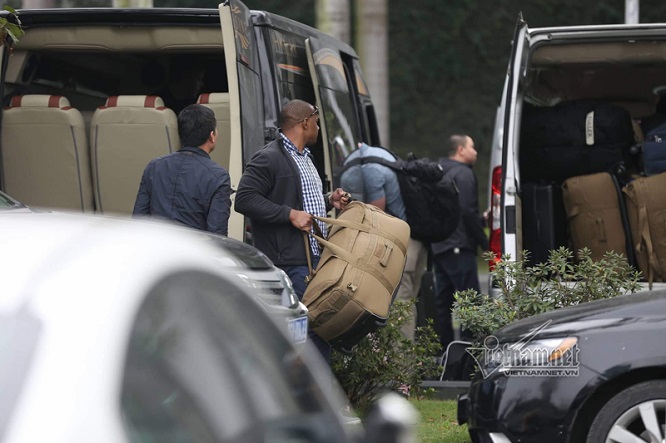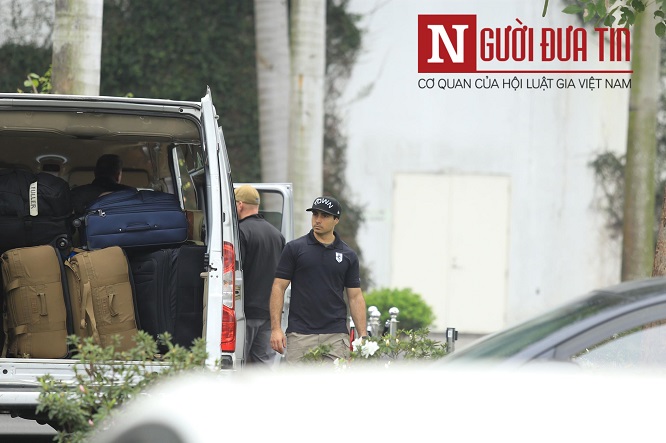 Một số mật vụ lấy hành lý đưa lên xe khác, di chuyển khỏi khách sạn. Ảnh: Vietnamnet |