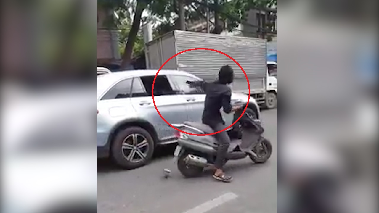 | Long điều khiển xe máy, cầm mã tấu chém rơi kính chiếu hậu của xe ô tô (Ảnh: VnExpress) |
