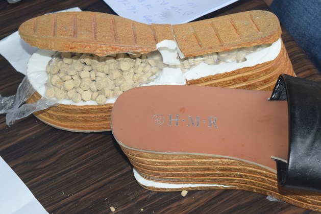 Số ma túy được cất giấu tinh vi trong đế dép - Ảnh: báo Lao động |