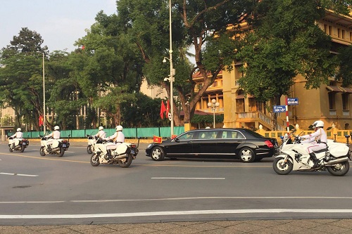 Sau khi rời khỏi sân bay Nội Bài, đội xe Yamaha FJR1300 P đặc chủng đã dẫn đoàn xe đưa Tổng thống Donald Trump vào trung tâm TP. Hà Nội để bắt đầu các hoạt động của chuyến thăm.