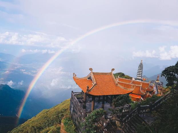Khi cầu vồng xuất hiện, lúc rực rỡ cực quang, Phật tử bốn phương ngỡ như Đức Phật từ bi đang hiển linh ban phước lành. Fansipan luôn biết cách đưa người du ngoạn đi từ bất ngờ này tới ngỡ ngàng khác.