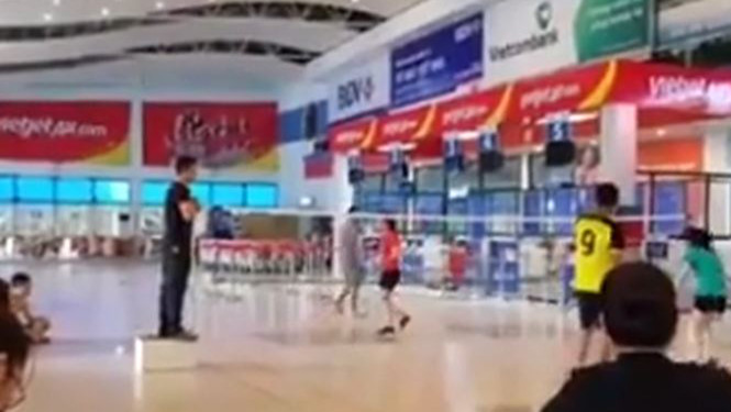 Nhà ga cảng hàng không Đồng Hới đóng cửa để nhân viên chơi cầu lông sáng 19/3 - Ảnh cắt từ clip |