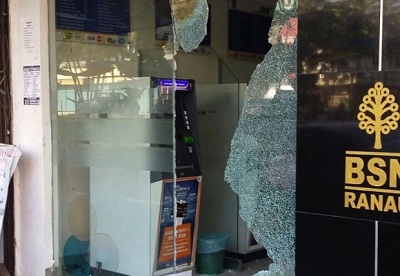 Cửa kính một cửa hàng bị vỡ do động đất. (Ảnh: Themalaysiaonline). |