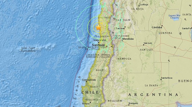 Tâm chấn của trận động đất là khoảng 54 km về phía tây Illapel, Chile, Cơ quan khảo sát địa chất Mỹ (USGS) cho biết. Trận động đất xảy ra vào khoảng 7 giờ 54 phút theo giờ địa phương và có độ sâu 33 km.