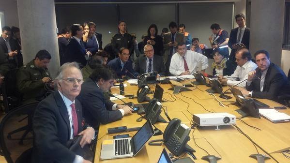 Quan chức Cơ quan tình huống khẩn cấp Chile họp bàn theo dõi tình hình động đất. Ảnh: Twitter |