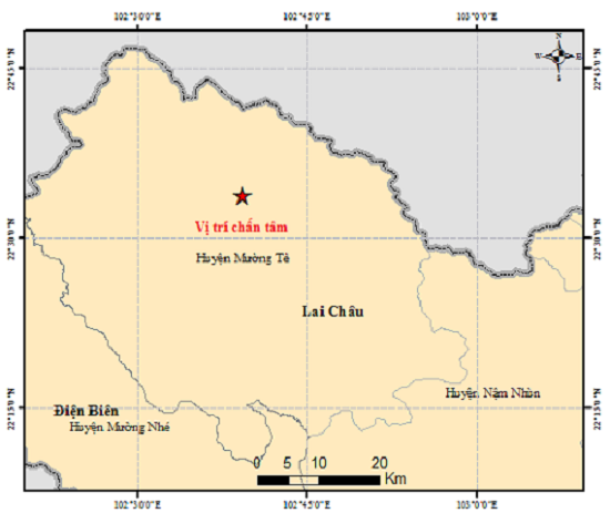 Theo Trung tâm báo tin động đất và sóng thần (Viện Vật lý địa cầu), trận động đất 4,9 độ richter này xảy ra vào lúc 6h12p26s (giờ GMT), tức 13h12p26 (giờ Hà Nội) ngày 16/6 tại khu vực huyện Mường Tè, Lai Châu), có độ sâu chấn tiêu khoảng 12,6km.
