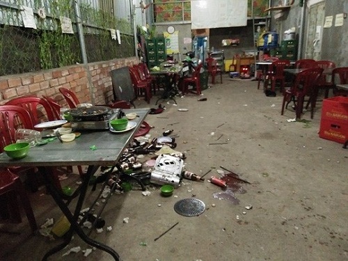 Hiện trường vụ ẩu đả tại quán nhậu vào đêm 15/7 ở phường Long Bình (TP Biên Hòa, Đồng Nai) làm một người chết, 2 người bị thương. Ảnh: Tri thức trực tuyến. |