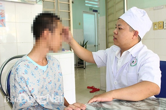 Em P. đang được bác sĩ thăm khám. Ảnh: Báo Đồng Nai |
