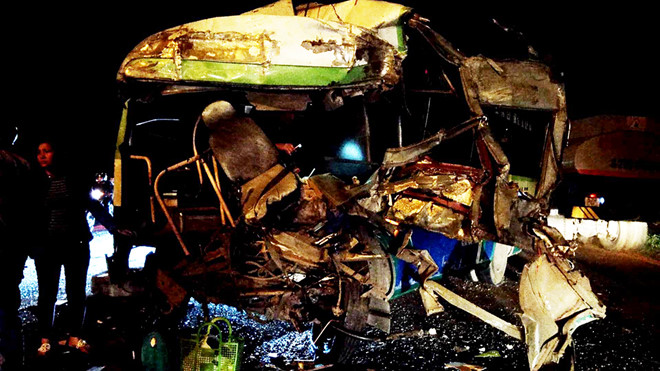 Vụ tai nạn làm tài xế xe bus, xe khách và 4 hành khách bị thương nặng phải đưa đi cấp cứu. Ảnh: Tri thức trực tuyến |