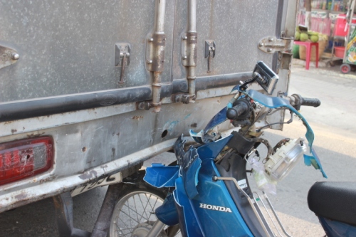 Cú tông mạnh khiến cho đầu xe của anh H. dắt thẳng vào đuôi xe tải nát bét, đuôi xe máy cũng vỡ nát, còn anh H. Ngã xuống đường bị chấn thương phần đầu, tay, chân,... Anh H. nhanh chóng được người dân đưa đi cấp cứu trong tình trạng nguy kịch.