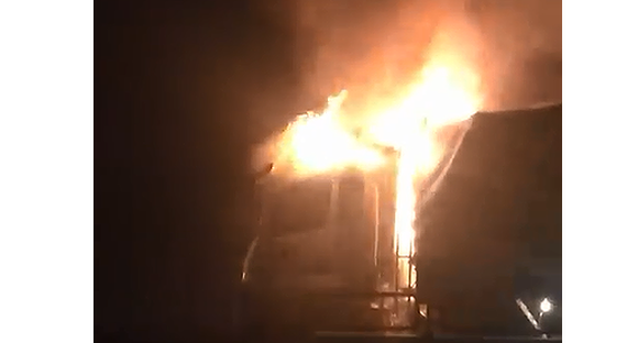 Vụ cháy khiến cho phần cabin của xe bị thiêu rụi hoàn toàn.