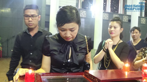 Bà Ngọc Khanh - vợ NSND Trịnh Thịnh khóc thương chồng. | Vợ, con gái và cháu của NSND Trịnh Thịnh khóc trước linh cữu ông. | NSƯT Chiều Xuân.